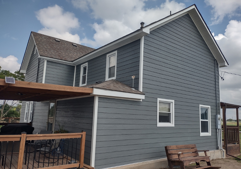 The original siding was worn and weathered, offering limited protection and giving the house an outdated look. We replaced it with high-quality gray lap siding accented by clean white trim, creating a fresh and contemporary appearance.